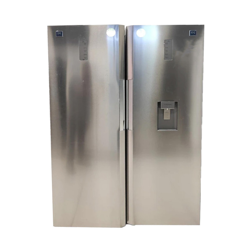 یخچال و فریزر در یک دستگاه، دربهای عمودی کنار هم دارند.