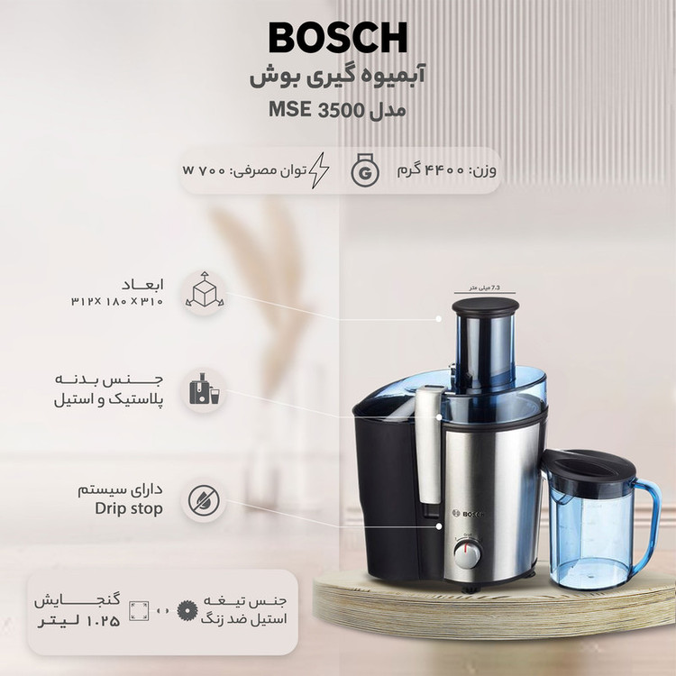 آبمیوهگیری بوش مدل MES3500 | طراحی زیبا، قدرت بالا و کاربری آسان