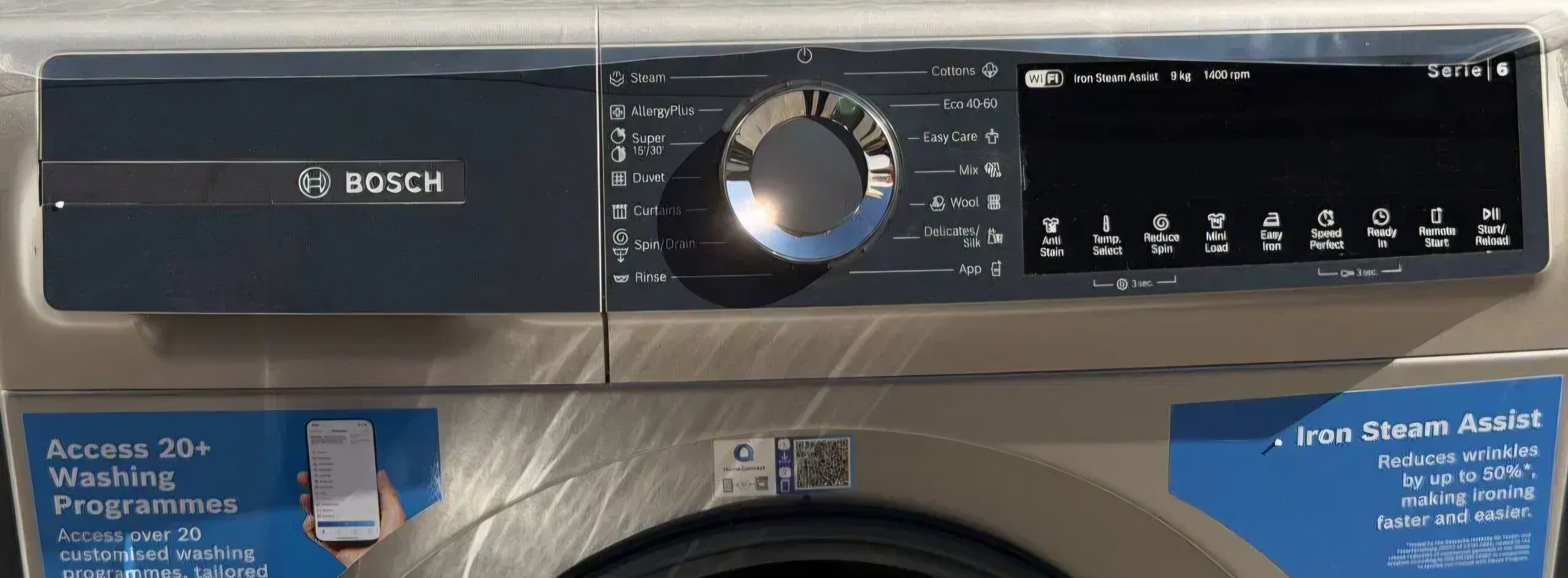 لباسشویی بوش WGK244Z0ME با طراحی مدرن و پنل مشکی-نقرهای براق جلوهای شیک به آشپزخانه شما میدهد.