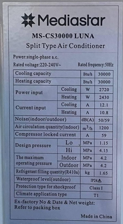 کولر گازی مدیا استار MS‑CS30000 LUNA گزینهای قدرتمند و مناسب برای فضاهای بزرگ است. با عملکرد سرمایش و گرمایش، مصرف انرژی منطقی و امکانات کاربردی، این مدل میتواند انتخاب خوبی برای محیطهای با آب و هوای معتدل باشد.