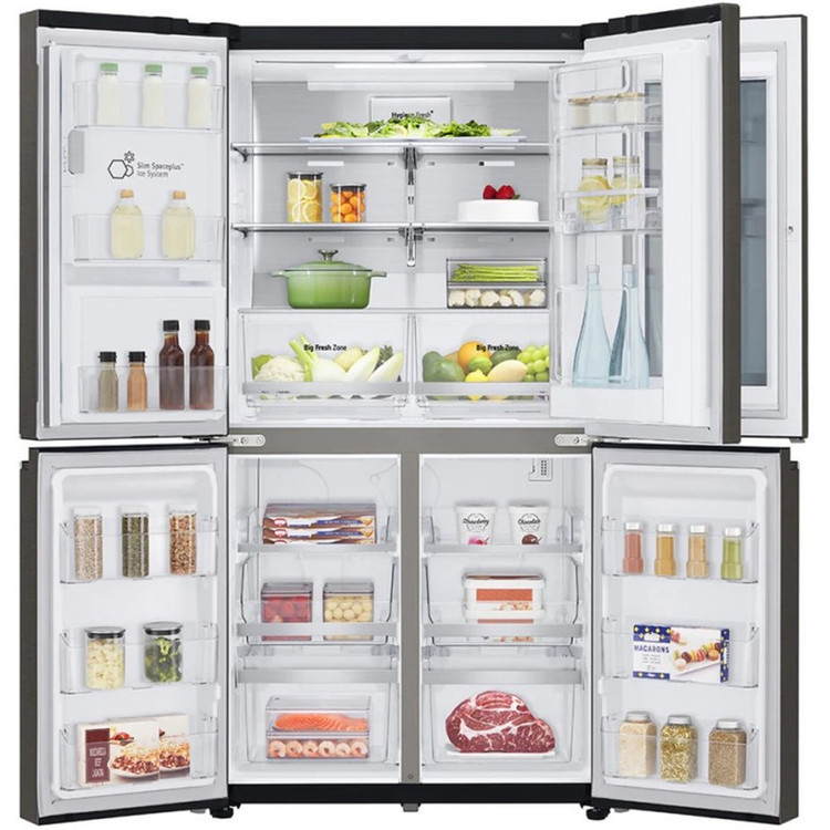 یخچال چهار درب الجی GR-X24FMKBL از سری محصولات لوکس و نسل جدید الجی است که با طراحی مشکی مات، پنل شیشهای InstaView و ساختار چهاردرب حرفهای، یک انتخاب ایدهآل برای آشپزخانههای مدرن به شمار میآید. این مدل با ظرفیت ۲۵ فوت، فضای بسیار بهینه و کاربردی ارائه میدهد و با وجود اندازه نسبتاً جمعوجور، قابلیت ساماندهی حرفهای مواد غذایی را فراهم میکند.