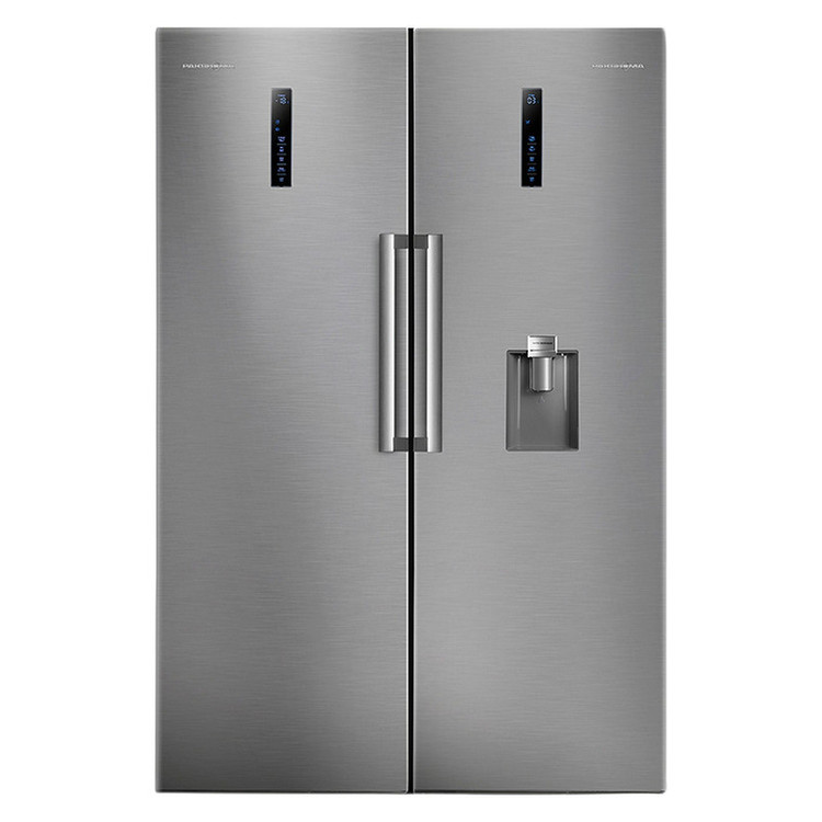 یخچال فریزر 32 فوت دوقلو پاکشوما مدل RTRA-RTFA901 iX (N1) سری Twin Peaks، دارای نمایشگر و بدون برفک، با ارتفاع 187، پهنای 118 و عمق 73 سانتیمتر، میزان مصرف انرژی A+، دارای 5 طبقه در یخچال و 4 کشو در فریزر