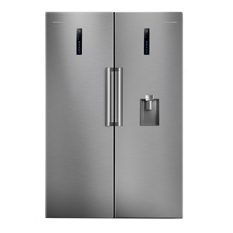 یخچال فریزر 32 فوت دوقلو پاکشوما مدل RTRA-RTFA901 iX (N1) سری Twin Peaks، دارای نمایشگر و بدون برفک، با ارتفاع 187، پهنای 118 و عمق 73 سانتیمتر، میزان مصرف انرژی A+، دارای 5 طبقه در یخچال و 4 کشو در فریزر