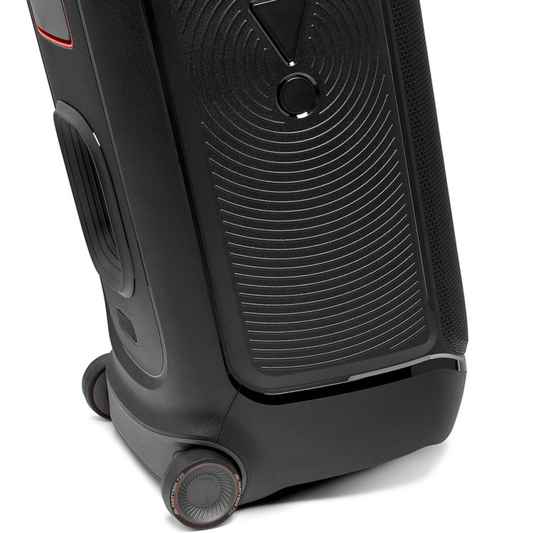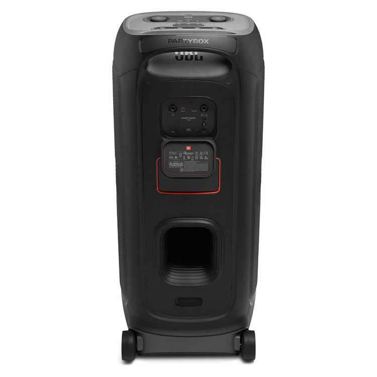اسپیکر بلوتوثی قابل حمل جی بی ال مدل PartyBox 720، یک غول صوتی ۳۱ کیلوگرمی با ابعاد ۴۰۶x۹۴۲x۴۱۶ میلیمتر است که با بدنهای از جنس پلاستیک و چرخ و دستگیره ثابت طراحی شده تا جابهجایی آن آسان باشد، این دستگاه قدرتمند با توان خروجی کلی ۸۰۰ وات، صدای JBL Pro Sound را از طریق دو سابووفر ۹ اینچی و دو توییتر ارائه میدهد و پاسخ فرکانسی گستردهای بین ۳۲ تا ۲۰۰۰۰ هرتز دارد، همچنین با بهرهگیری از فناوری AI Sound Boost کیفیت خروجی صدا را بهینه میسازد و به واسطه گواهی مقاومت در برابر پاشش آب و گرد و غبار، برای فضاهای باز نیز مناسب است، نورپردازی دینامیک و هماهنگ با ریتم موسیقی (نور RGB) یکی از ویژگیهای برجسته این اسپیکر است که از طریق اپلیکیشن JBL PartyBox قابل تنظیم است، اتصالات آن بسیار کامل است و شامل بلوتوث نسخه ۵.۴ با پروفایلهای A۲DP و AVRCP، ورودیهای AUX، USB Type-C، دو ورودی XLR برای اتصال میکروفون یا گیتار الکتریک و قابلیت Auracast برای اتصال چندین اسپیکر میشود، منبع انرژی این اسپیکر ترکیبی از برق شهری و یک باتری لیتیوم یونی با ظرفیت ۹۱۶۸ میلیآمپر ساعت است که تا ۱۵ ساعت پخش موسیقی را تضمین میکند و علاوه بر آن، میتواند به عنوان پاوربانک برای شارژ دیگر دستگاهها هم استفاده شود و دکمه Bass Boost و قابلیتهای تنظیم اکولایزر و حالتهای مختلف پخش صدا برای شخصیسازی تجربه شنیداری در آن تعبیه شده است.