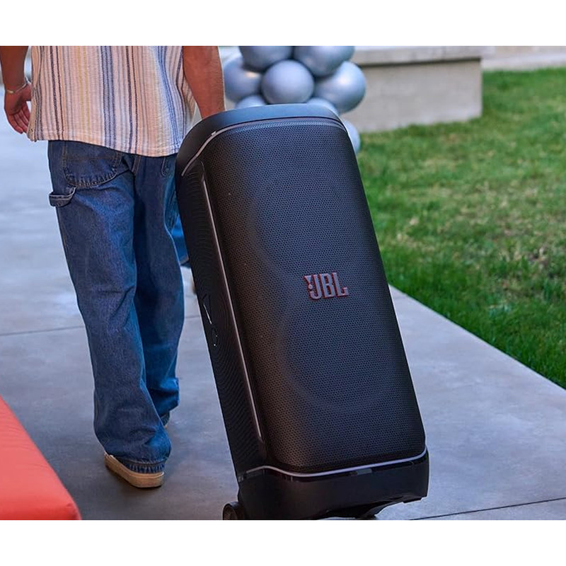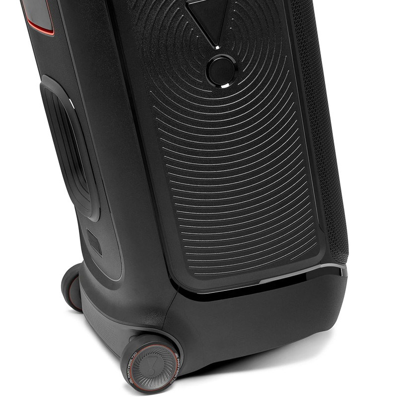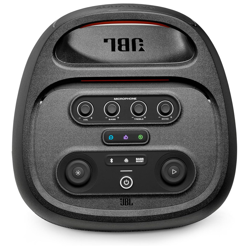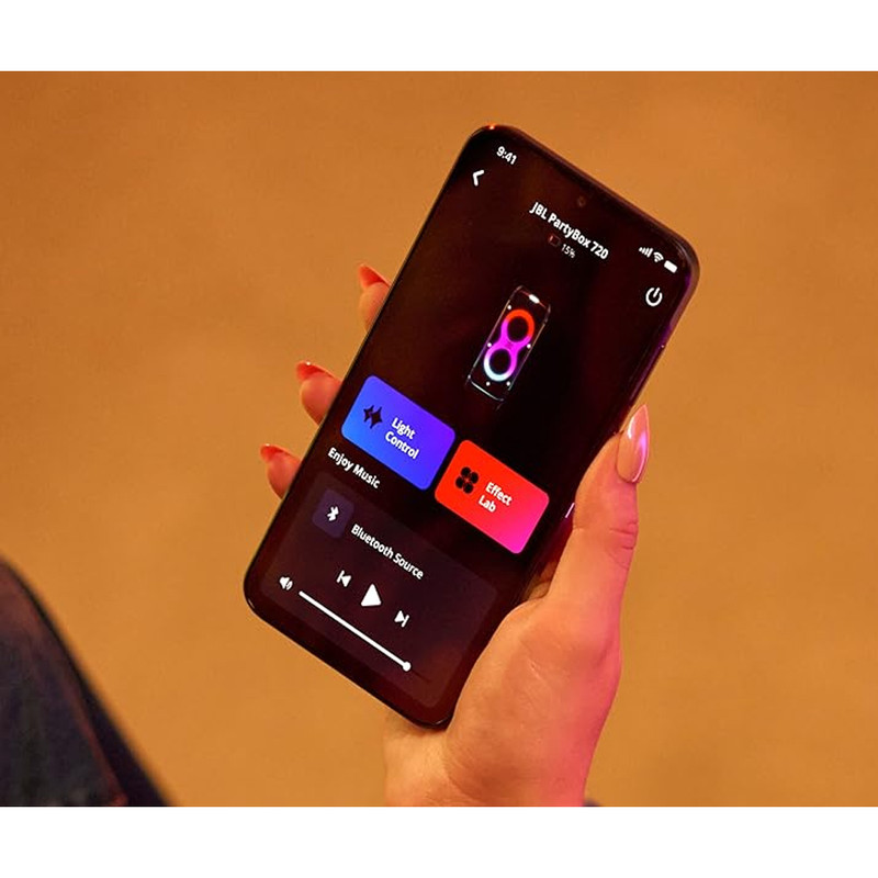 اسپیکر بلوتوثی قابل حمل جی بی ال مدل PartyBox 720، یک غول صوتی ۳۱ کیلوگرمی با ابعاد ۴۰۶x۹۴۲x۴۱۶ میلیمتر است که با بدنهای از جنس پلاستیک و چرخ و دستگیره ثابت طراحی شده تا جابهجایی آن آسان باشد، این دستگاه قدرتمند با توان خروجی کلی ۸۰۰ وات، صدای JBL Pro Sound را از طریق دو سابووفر ۹ اینچی و دو توییتر ارائه میدهد و پاسخ فرکانسی گستردهای بین ۳۲ تا ۲۰۰۰۰ هرتز دارد، همچنین با بهرهگیری از فناوری AI Sound Boost کیفیت خروجی صدا را بهینه میسازد و به واسطه گواهی مقاومت در برابر پاشش آب و گرد و غبار، برای فضاهای باز نیز مناسب است، نورپردازی دینامیک و هماهنگ با ریتم موسیقی (نور RGB) یکی از ویژگیهای برجسته این اسپیکر است که از طریق اپلیکیشن JBL PartyBox قابل تنظیم است، اتصالات آن بسیار کامل است و شامل بلوتوث نسخه ۵.۴ با پروفایلهای A۲DP و AVRCP، ورودیهای AUX، USB Type-C، دو ورودی XLR برای اتصال میکروفون یا گیتار الکتریک و قابلیت Auracast برای اتصال چندین اسپیکر میشود، منبع انرژی این اسپیکر ترکیبی از برق شهری و یک باتری لیتیوم یونی با ظرفیت ۹۱۶۸ میلیآمپر ساعت است که تا ۱۵ ساعت پخش موسیقی را تضمین میکند و علاوه بر آن، میتواند به عنوان پاوربانک برای شارژ دیگر دستگاهها هم استفاده شود و دکمه Bass Boost و قابلیتهای تنظیم اکولایزر و حالتهای مختلف پخش صدا برای شخصیسازی تجربه شنیداری در آن تعبیه شده است.