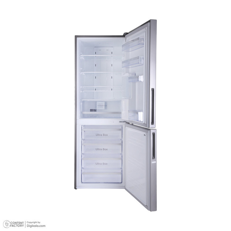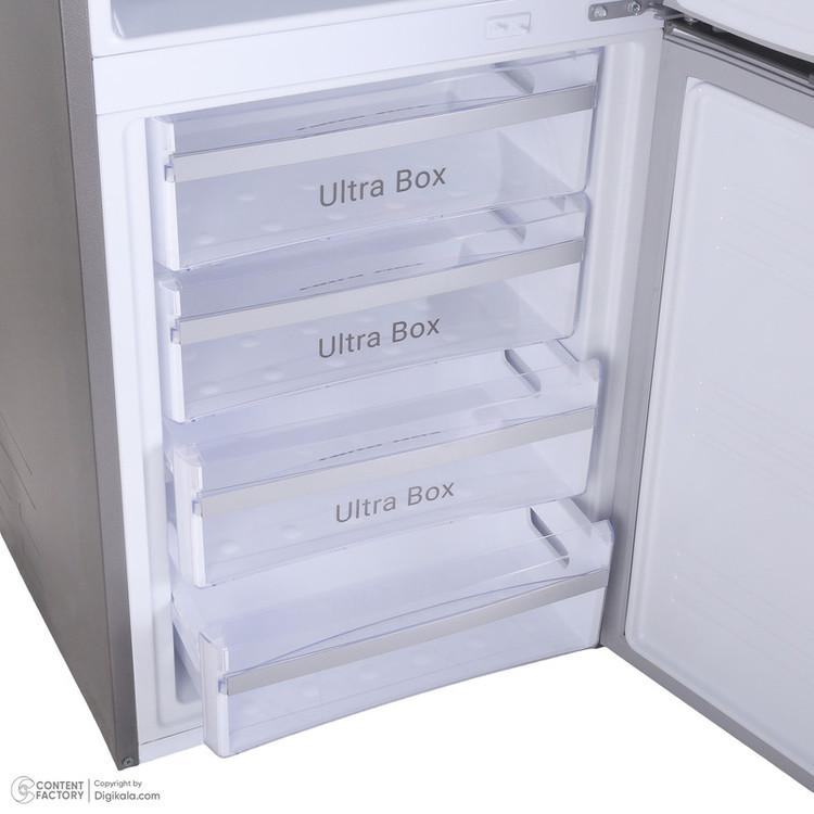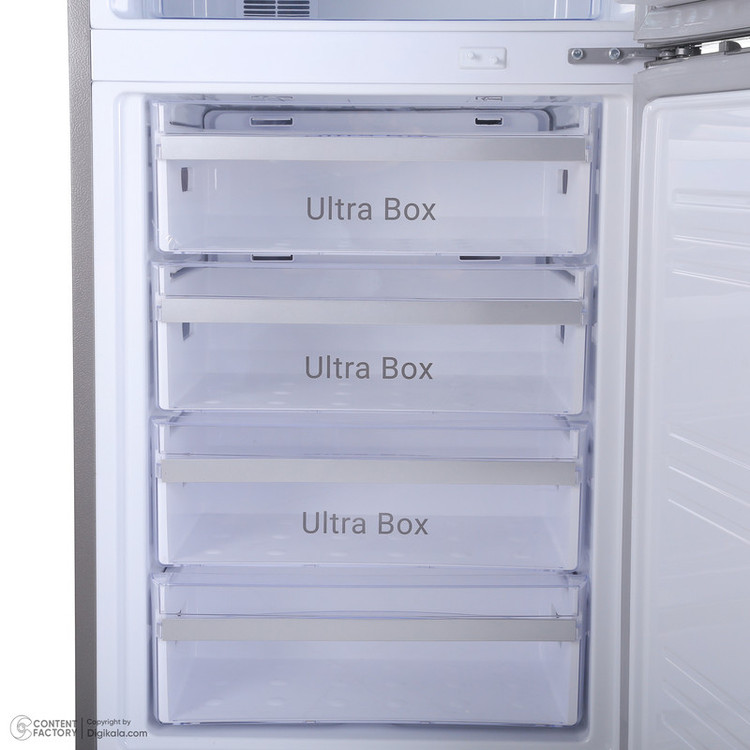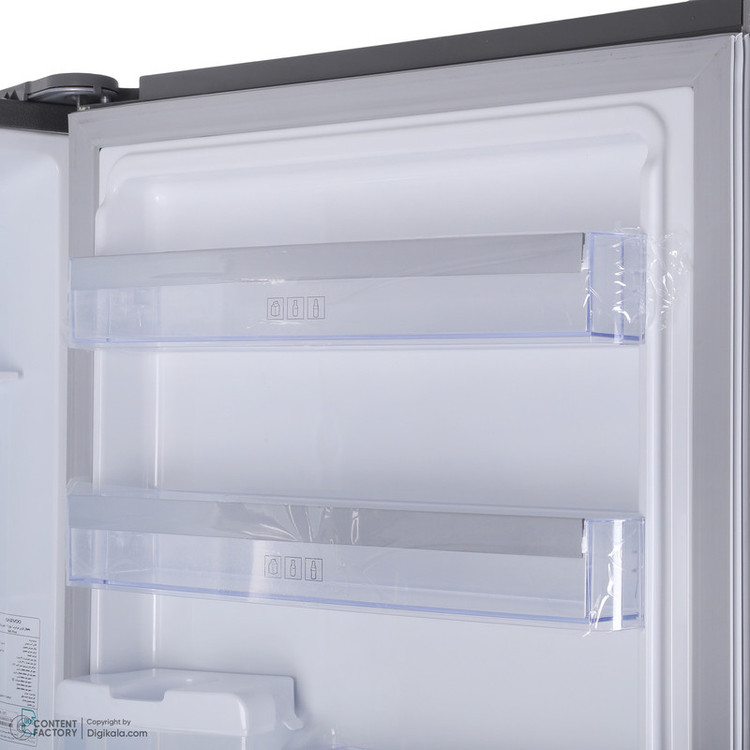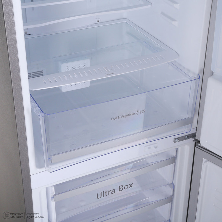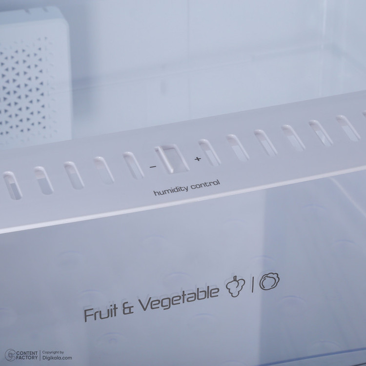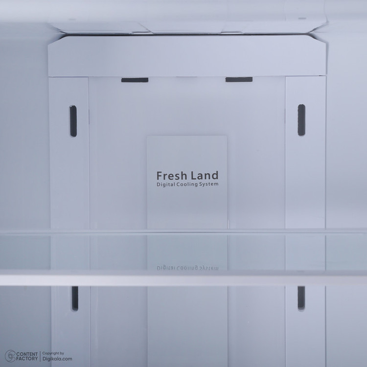 فضای داخلی به گونهای طراحی شده که طبقات مقاوم، کشوی میوه و سبزیجات، قفسههای متعدد درب و فریزر جادار، امکان سازماندهی آسان مواد غذایی را فراهم میکند. سیستم سرمایش چندگانه (3D Cooling) نیز دما و رطوبت را به صورت یکنواخت در کل کابین پخش میکند تا تازگی مواد غذایی حفظ شود.